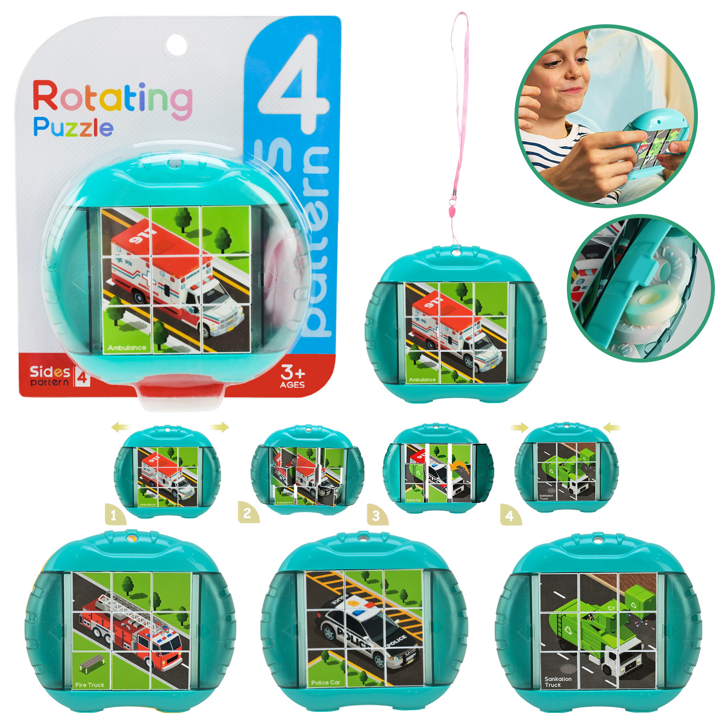 Іграшка обертові кубики арт. 5587-3, р-р 12*2,5*10см,потрібно скласти 4 картинки, інструкція, матузок, планшет 15*2,5*15см